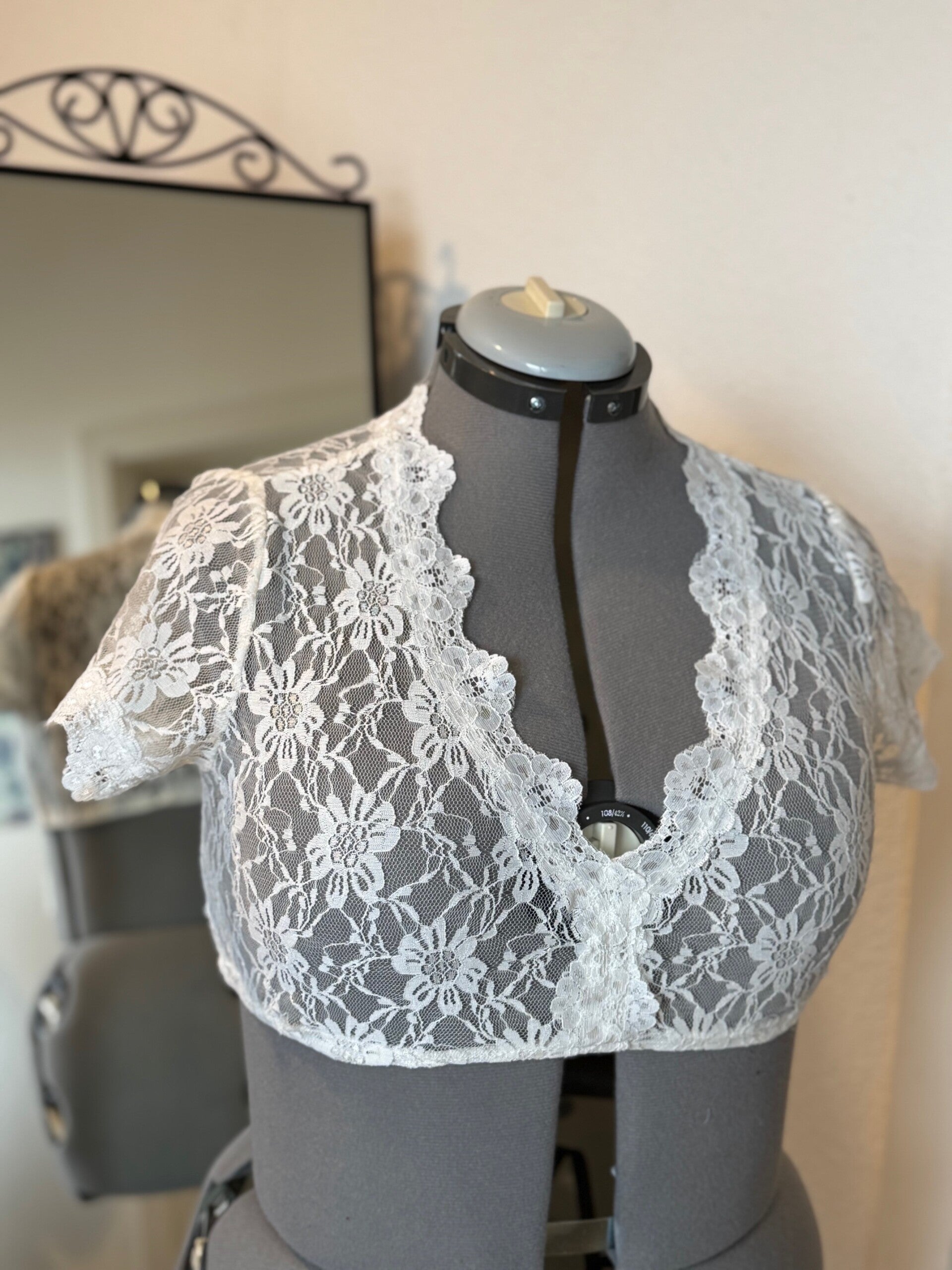 Spitzenbluse mit sehr viel Stretch, Marke unbekannt, geht auch für Grösse 46